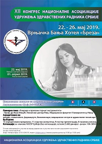 ПРВО ОБАВЕШТЕЊЕ XII КОНГРЕСА НАЦИОНАЛНЕ АСОЦИЈАЦИЈЕ УДРУЖЕЊА ЗДРАВСТВЕНИХ РАДНИКА РЕПУБЛИКЕ СРБИЈЕ СА МЕЂУНАРОДНИМ УЧЕШЋЕМ МАЈ 2019.Поштоване колегинице и колеге, Учинили би сте нам изузетну част и задовољство да прихватите наш позив за присуство и учешће у раду на XII Конгресу Националне асоцијације удружења здравствених радника Србије са међународним учешћем, који ће се одржати у Хотелу "БРЕЗА" од 22. - 26. маја 2019. године. ______________________________________________________________________________________