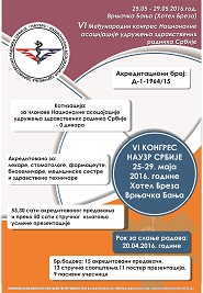 Четврти Конгрес Националне асоцијације удружења здравствених радника Србије са међународним учешћем - МАЈ 2015Са задовољством Вас обавештавамо да ће се Четврти Конгрес Националне асоцијације удружења здравствених радника Србије са међународним учешћем одржати у Врњачкој Бањи у Хотелу „Бреза“ у периоду од 27. до 31. маја 2015. године. ______________________________________________________________________________________